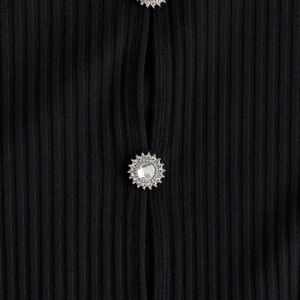 New Stylish Black Ribbed Button-Up Top