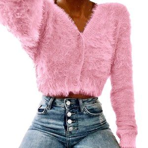Lite & Stylish Stretchy Crop Top Sweater button up for socializing, dancing. New in Medium Size Only.