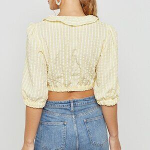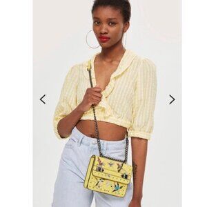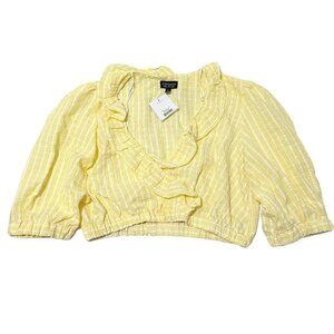 New TOPSHOP Women's Seersucker Crop Top Ruffle Trim V-Neck Yellow