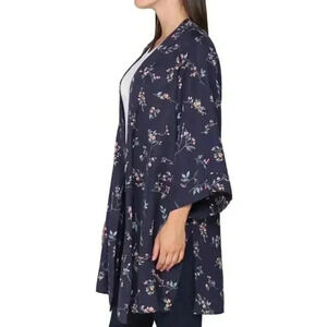 New Tahari Floral Open Top Kimono Style Blue Small Medium Lightweight Shirt