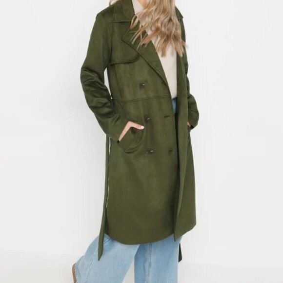 New Tall Khaki Green Faux Suede Midi Trench Coat