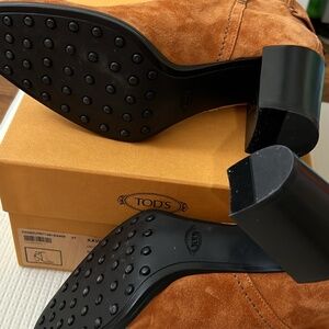 New, never worn size 7 Suede ankle boots in a beautiful burnt orange. Comes with box.
