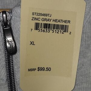Stylish gray zip-up vest with a subtle logo detail. Perfect for layering. new with tags. small barely there spot. see pics