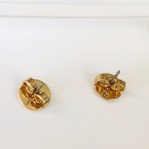 Just slightly over 1/2” in size. Gold plated rolled brass stud earrings with steel post.