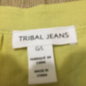 New Tribal Jeans green tiered midi dress buttons on front bodice size large