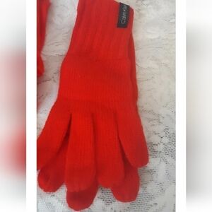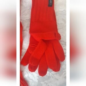 New Two Piece Set CALVIN KLEIN RED scarf touch gloves soft knit OS