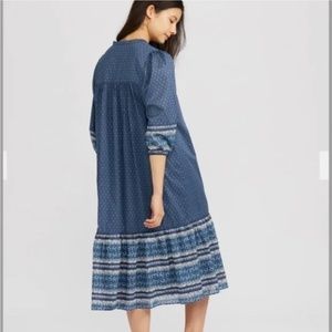 Charming light olive green (tanish) tiered dress. Comfortable and stylish. 100% cotton. 3/4 sleeves.