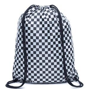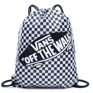 The Benched Bag is a 100% polyester lightweight cinch backpack with an all over checkerboard print. It features poly rope straps a Vans screen printed logo and a 12-liter capacity. This item is authentic.