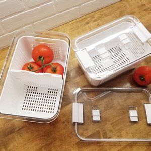 Includes 2 (1 Large & 1 Small) White Leachate Baskets inside Clear Sealed Containers. Large size has handy vertical or horizontal divider.