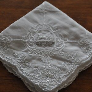 New Vintage Celine White Silk Handkerchief Embroidered Scalloped Edges Square