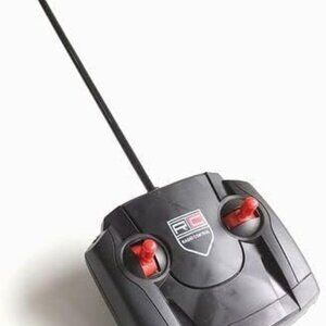Remote control car is approx hand size. Uses 5 batteries (2 for controller and 3 for car - Batteries not included).
