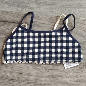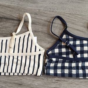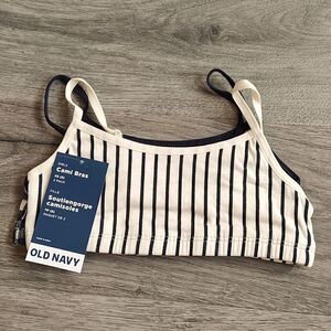 The brand is Old Navy. The color is called Gingham/Navy Pinstripe. Pack includes two cami bras, each in a different print or pattern. Adjustable spaghetti straps. Scoop neck. Banded elastic hem. Soft-washed double-layer cotton jersey, with comfortable stretch. 95% cotton & 5% spandex. Machine wash cold, tumble dry low. Cami bra hits just above the ribcage. New with tag attached. Color may be slightly different from photos. Smoke free, pet friendly home. Make an offer or create a bundle for extra savings! New to Poshmark? - Use code OLIVEMARCIA when you sign up for $15 off your first purchase!
