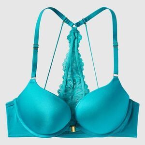 Color may be slightly different from photos - the bra is more of a teal color & not a light blue as some of these photos are showing.
