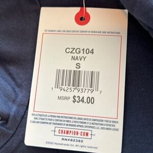 New With Tags - Champion Navy with Pink Champion decal Hooded Shirt. Siz…