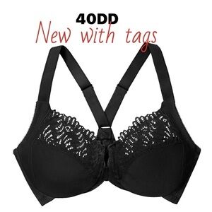 New With Tags Women's Black Plus Size Front-close T-back Underwire Bra 4…
