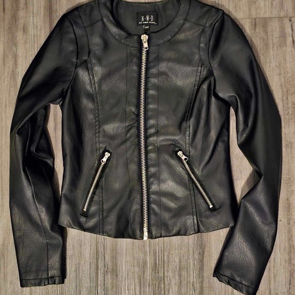 New Woman Design Vegan Leather Zip up Jacket