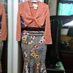 A long-sleeved top with twist front V-shaped and have a design which is very stylish. A style that is both casual and elegant, but also comfortable for everyday wear. Fashion trendy casual everyday clothing ideal for both adults and teens throughout the year. Selling top only, skirt not included.