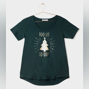 New Women's‎ Size Small Hunter Green Too Lit To Quit Scoop Neck Christmas Tee