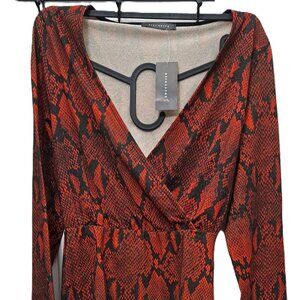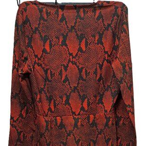 Women's red snake design top with high waistline, which sits just below the bust and flows softly down. This style is especially flattering if you want a relaxed yet elegant look, as it skims over the hips and allows for easy movement. They work well for both casual outings and more formal events. Can dress them up with a skirt or keep it casual with jeans. For teens and adults.