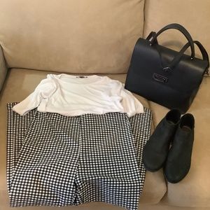 New WomensPetite/Juniors White Short Top Size XS and Black & White Slim Ankle Pants