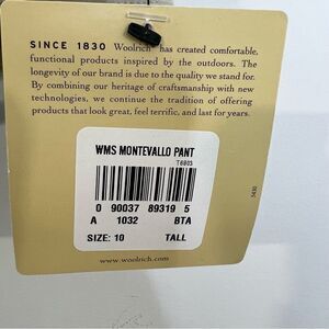 These tan pants are the Montevallo pant by Woolrich. Brand new with tags.