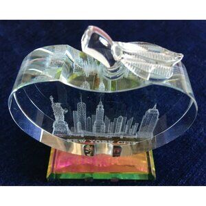 New York City Apple Art Glass Souvenir Paperweight Etched Footed 3"*3"* 1"