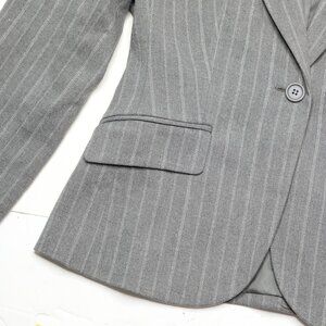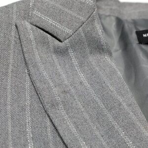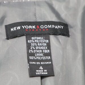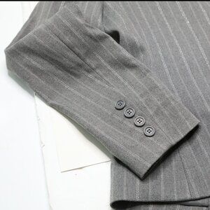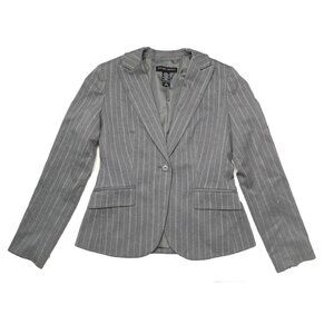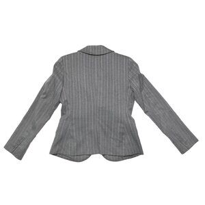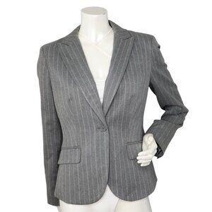 New York & Co Pinstripe Blazer Jacket Grey Silver Single Breasted Peak Lapel