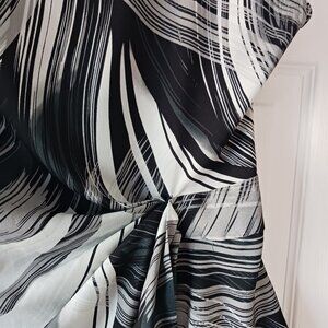 New York & Company Striped Black White Short Sleeve Tie Waist Blouse Size Large