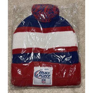 New York Giants Bud Light NFL Knit Beanie Hat Red/Blue/White Pom Unisex Winter