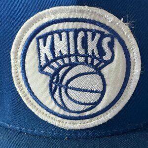 Rare New York Knicks hat from Mitchell & Ness. Sewn on front patch. There is a mark on the top of the brim, I haven't tried to clean it to see if it comes off and the headband has sweat marks. Other than that it's in excellent condition.
