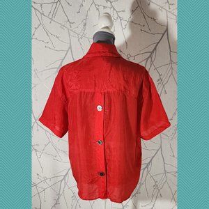 New York Studios VTG Red Silk Button Up Loose Fit Shirt