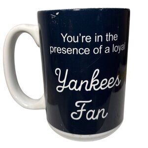 This ceramic mug features bold text displays for Yankees fans, encouraging spirited team support. Its humorous message adds personality to morning coffee or tea rituals.