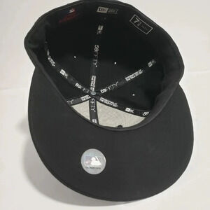 New York Yankees New Era mens black fitted hat with black embroidered logo.