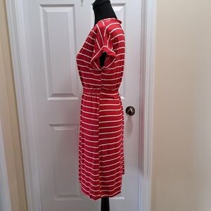 New! Yummie Striped Dress Red And White Stripes V-neck Small Short Sleeved Dress