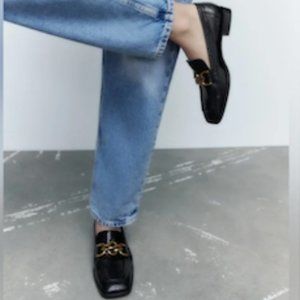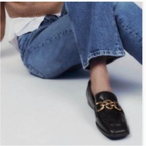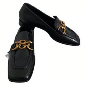 Zara Animal Print Snakeskin Print Leather Loafers Mocassins Flats Gold Buckle Links