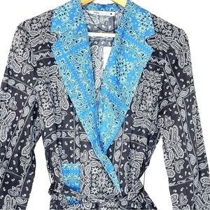 New Zara Black and Blue Paisley Print Retro Collared Wrap Top US S