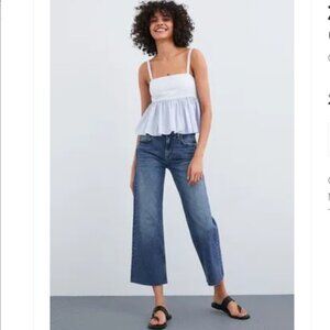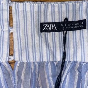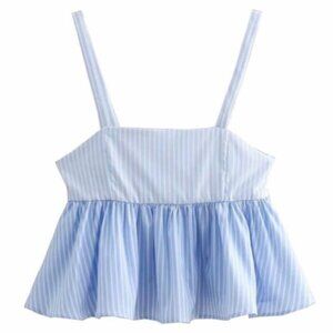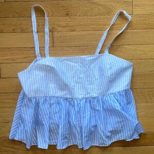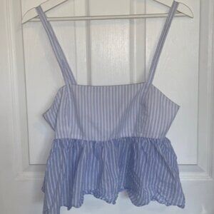 New Zara Blue and White Striped Open-Back Cropped Tank Top