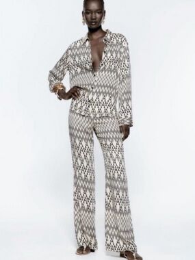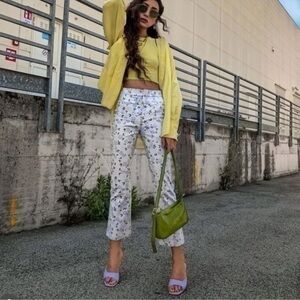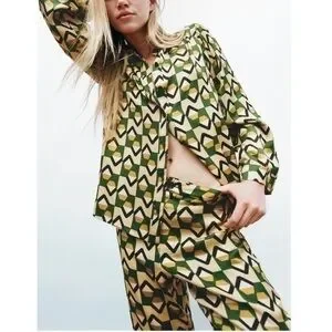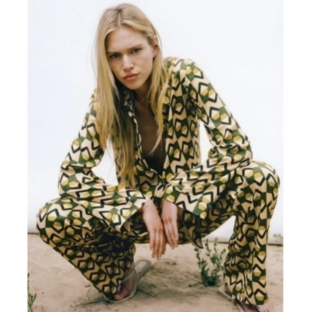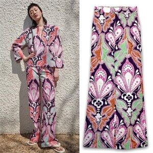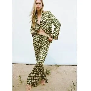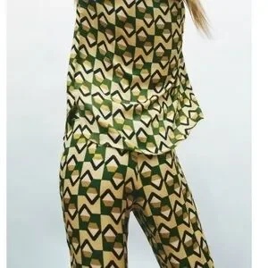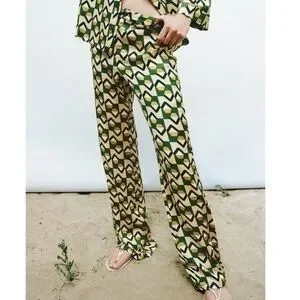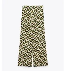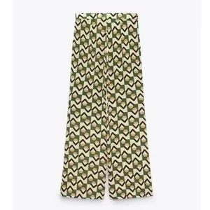 New Zara | Green Bohemian Retro Print Highrise Pants