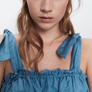 New Zara Taffeta Midi Maxi Dress Tiered Tie Straps Ruffle Romantic Wedding Guest