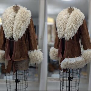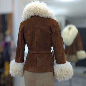 It looks nothing like it did when I picked it up. It had a tight little old and battered crew neck collar on it, the shearling at the cuff was only 2" wide. Sad, tired and definitely not the type of vintage penny lane that would turn heads.