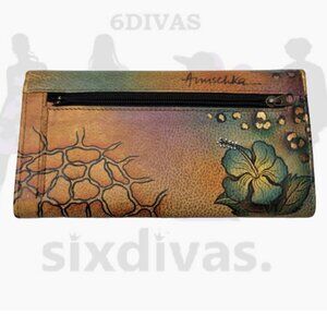 Anuschka Handpainted Leather Hibiscus Flower Wallet