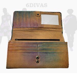 Anuschka Leather Women's Accordion Flap Hand Painted Leather Wallet Floral fan