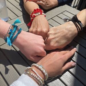 New, bundle of 3 packs of 6 strands each, beads and charms on stretch chord