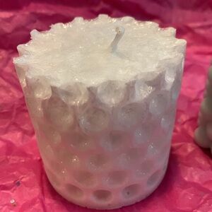 The second candle is mainly made from soy wax, but the top has a bit of the ice was. This taller candle is a very pale light green, with white only on the top.