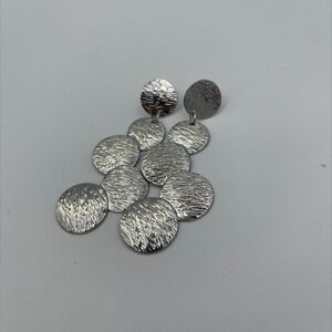 New earrings in hammered silver look, statement size, multiple coin, fashion