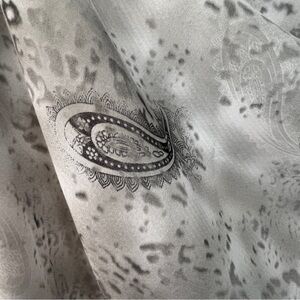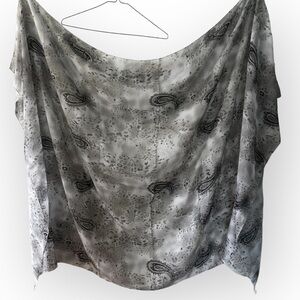 Soft grey 42in x 68in scarf. Lightweight 100% poly with paisley design.