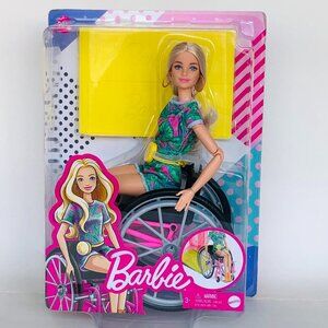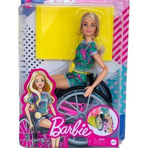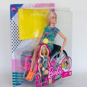 New in Box Barbiel w/Wheelchair and Ramp Blonde Hair and Tropical-Print Outfit