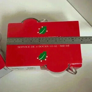 New in box! Two sets of 4 unused vintage glass Poinsettia mugs, perfect for Xmas (8 mugs total). Made in Indonesia, brand name Ancam, marked KIG on base. This festive design is popular among vintage Christmas collectors. The 10 oz mugs are in unused and undamaged condition, ready for holiday drinks of all kinds!