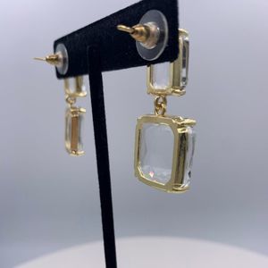 New, no tags, gold over 925 sterling clear crystal drop earring, statement piece