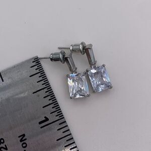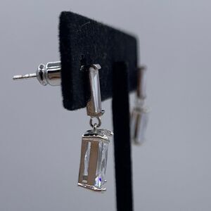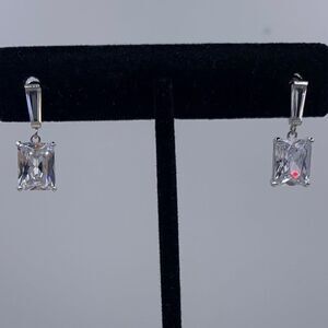 New no tags. Earrings in solid sterling silver, lab diamond emerald cut drops.